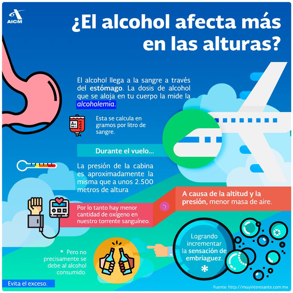 Durante un vuelo la presión y la altitud, aunado a tener alcohol en la sangre, pueden hacer que la sensación de embriaguez se incremente en el cuerpo, advirtió el Aeropuerto Internacional Benito Juárez Ciudad de México.