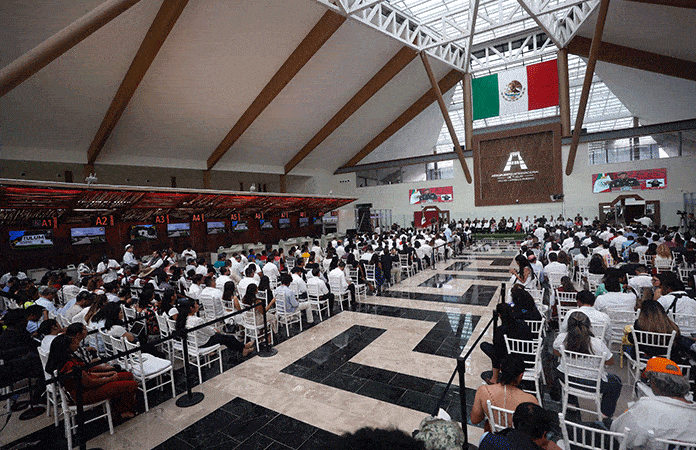 Durante su discurso el presidente de México destacó la inversión que se realiza para el crecimiento del sureste del país con obras como el Tren Maya, según dijo, con justicia social en beneficio de la ciudadanía.