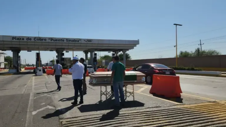 CULIACÁN, Sin.(EL UNIVERSAL).- Con un ataúd colocado en uno de los carriles de la caseta de peaje de Cuatro Caminos, de carretera México-Nogales, en Guasave que simboliza la muerte del agro, los productores del campo volvieron a dar paso libre a todos los conductores, en protesta por no tener una respuesta concreta sobre el precio de sus próximas cosechas.