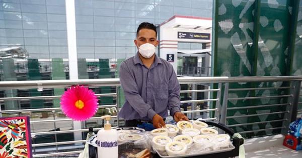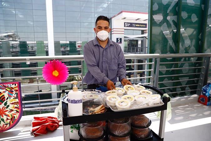 Uno de los puestos es de la chef Martha Andrea Arévalo, quien tiene la concesión de la cafetería en el Centro de Convenciones del AIFA, pero como en esa zona - que está lejos del edificio de la terminal- aún no hay actividades, solicitó permiso para poner un puesto ambulante.