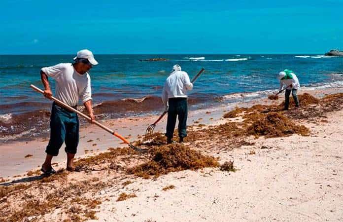 Aleja el sargazo a turistas en Puerto Progreso, Yuc.