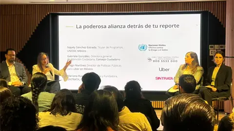 La estrategia es impulsada por la Oficina de las Naciones Unidas contra la Droga y el Delito, la organización SINTRATA, el Consejo Ciudadano para la Seguridad y Justicia de la Ciudad de México y la empresa Uber.