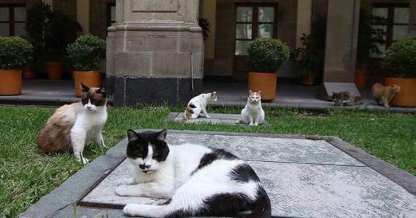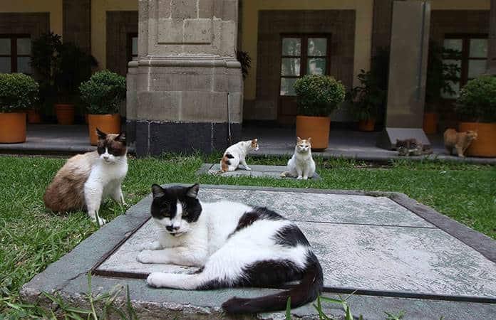 En Palacio Nacional viven más de 20 gato ferales que son cuidados por la Secretaría de Hacienda y Crédito Público (SCHP), quienes los proveen de alimentos así como de atención de veterinarios.