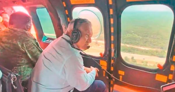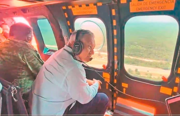 AMLO sobrevuela para supervisar avances de las obras del Tren Maya