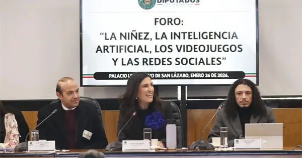 Durante la inauguración del foro "La Niñez, la Inteligencia Artificial, los Videojuegos y las Redes Sociales", realizado en el Palacio Legislativo de San Lázaro, la legisladora señaló que la función de la Cámara es construir leyes y acuerdosque permitan responder a los nuevos retos tecnológicos, particularmente aquellos que impactan en niñas, niños y jóvenes.