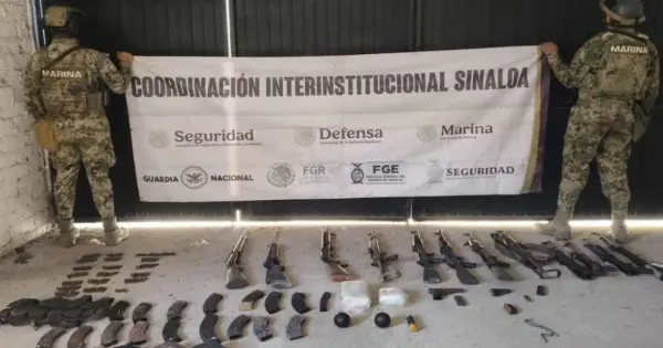 En Escuinapa, en la colonia Juárez elementos de la Secretaría de Marina (Semar) hallaron 11 armas largas, dos armas cortas, 200 cartuchos útiles, 27 cargadores, cuatro granadas, cuatro artefactos explosivos improvisados y cuatro kilos de sustancias químicas.