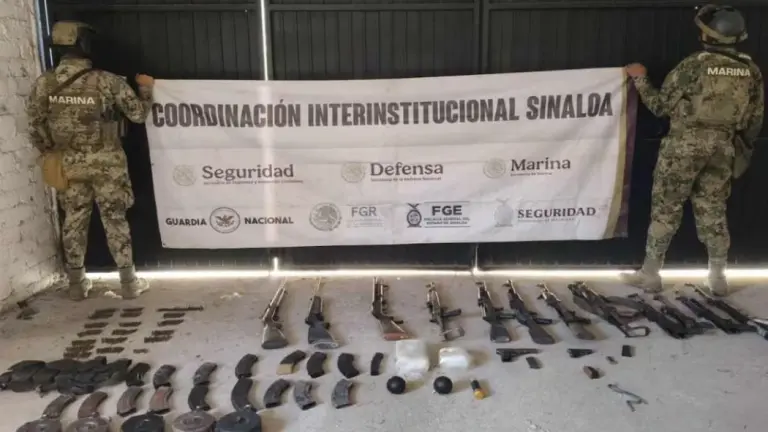 En Badiraguato, Sinaloa, en el poblado La Cieneguita, elementos del Ejército aseguraron dos armas largas, 11 cargadores, 300 cartuchos, diversas dosis de metanfetamina y un chaleco táctico.