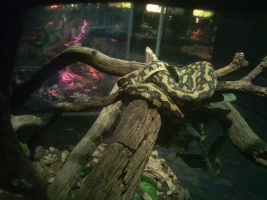 Además de una serpiente tigre voladora, un tegú, un skink de lengua azul, un varano de garganta negra, dos varanos del Nilo, un varano acuático, un pitón de woma, dos pitón de cabeza negra y dos boas de arena de Kenia.