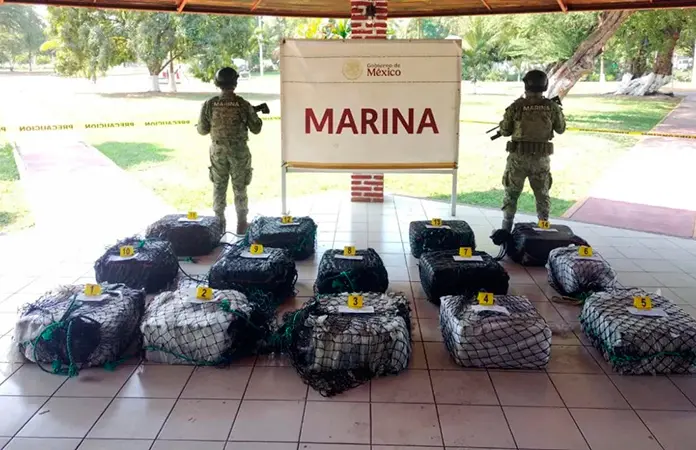 Ciudad de México.- Agentes de la Secretaría de la Marina (Semar) de México detuvieron este lunes a seis personas a bordo de una embarcación con 650 kilos de cocaína, a más de 112 kilómetros del puerto de Lázaro Cárdenas, en Michoacán.