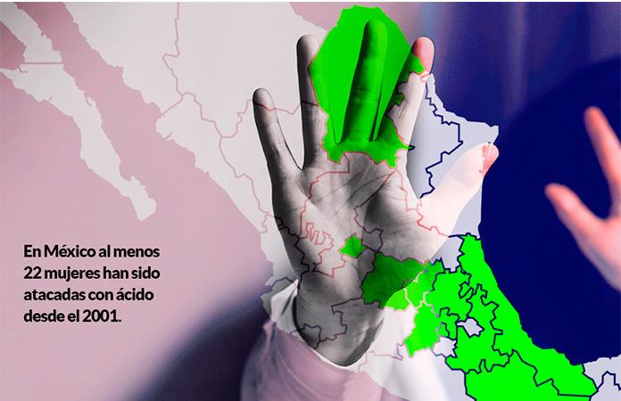 Hoy en día sólo en los estados de Baja California Sur, Oaxaca y San Luis Potosí el ataque con ácido está tipificado como agravante del delito de lesiones a mujeres en razón de género; mientras que, en Estado de México, Ciudad de México, Hidalgo y Aguascalientes son sólo agravantes del delito de lesiones en general.