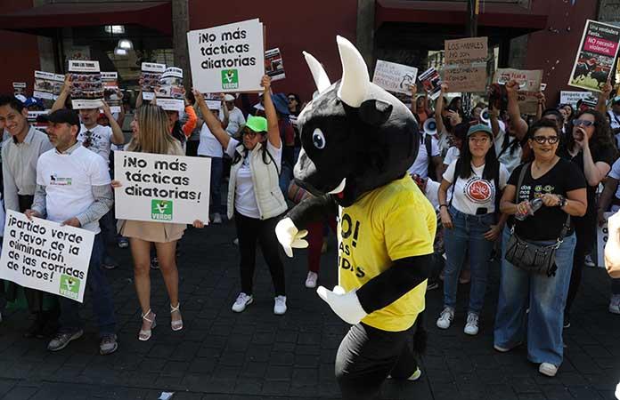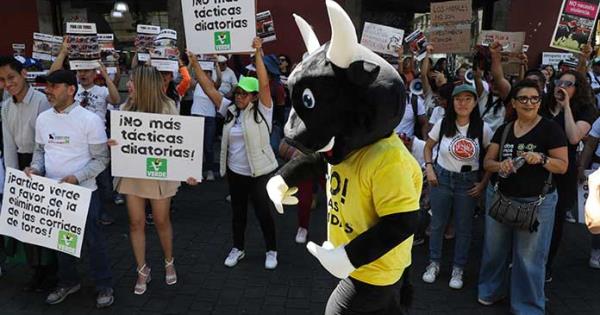 A las afueras del recinto de Donceles, animalistas y personas del PVEM se manifestaron para exigir la prohibición de la tauromaquia bajo la consigna de “abolición sí, regulación no”.