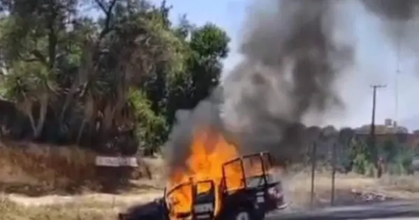 Presuntos huachicoleros emboscaron a policías en la zona de La Presa; tras el enfrentamiento, quemaron una patrulla y provocaron el cierre de la vía
