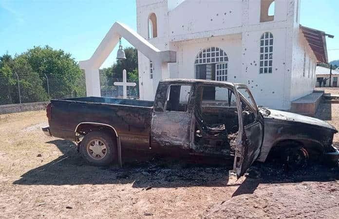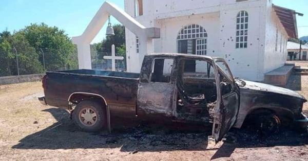 El padre encargado de la parroquia, Enrique Urzúa, compartió algunas fotografías donde se observa cómo las balas del enfrentamiento destruyeron los vidrios de un cuadro de la virgen de Guadalupe, además se observan algunos orificios de bala en una figura de cerámica de Jesucristo que está en una cruz.