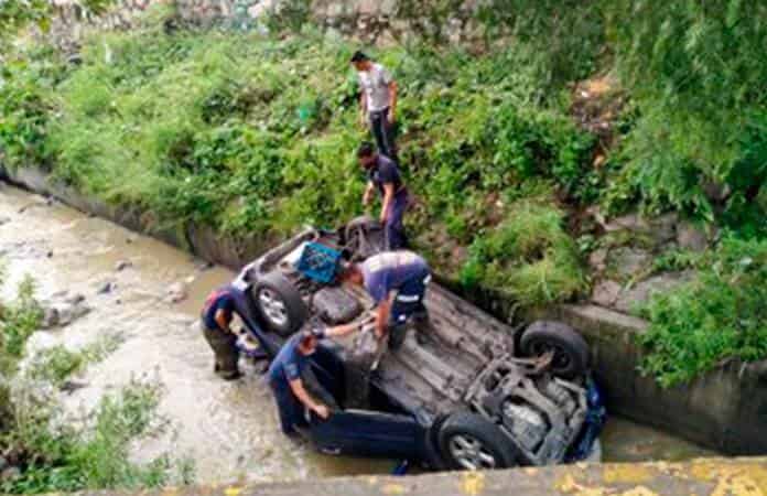 La volcadura esta vez se registró en avenida La Presa, frente al número 23 de la colonia Lázaro Cárdenas, primera sección, donde la conductora de una camioneta Xtrail color azul marino, con placas del Estado de México perdió el control de su unidad y cayó al canal de aguas negras, que desemboca al río de Los Remedios.