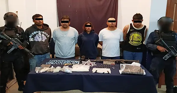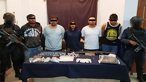En la intervención, las autoridades de los tres órdenes de gobierno aseguraron dos vehículos, siete armas de fuego, siete cargadores, ocho chalecos tácticos con siglas alusivas a una célula criminal, seis cartuchos útiles y más de mil dosis de drogas como cristal, cocaína, piedra, heroína y marihuana.
