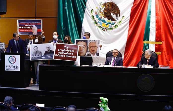 Por el PAN, Justino Arriaga reclamó las más de 10 casas e inversiones que tienen los Bartlett, así como el contrato por 31 millones de pesos que obtuvo su hijo por la venta de ventiladores al IMSS.