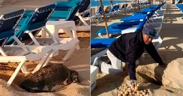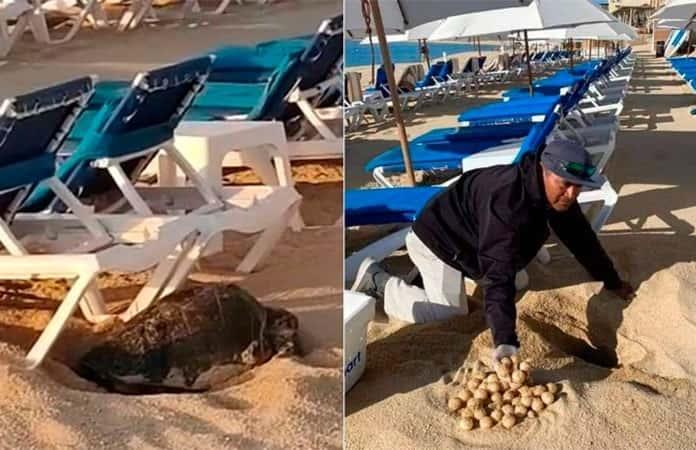 CIUDAD DE MÉXICO, abril 8 (EL UNIVERSAL).- Una tortuga marina, de la especie golfina, depositó 80 huevos en la playa El Médano en Los Cabos, en medio de decenas de camastros que invaden el área de anidación, hechos que han generado polémica en redes la mañana de este pasado Viernes Santo.