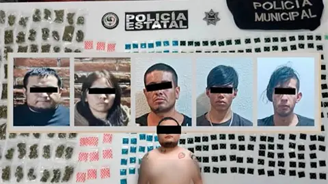 Por lo anterior, fueron detenidos Giovanni “N”, de 30 años, Jesús “N”, de 20 años, Víctor “N”, de 19 años y dos menores de edad, mismos que indicaron a los policías mexiquenses y municipales que forman parte de un grupo delictivo con orígenes en el estado de Jalisco, dedicado a la venta de droga, cobro de piso y secuestro en los municipios de Tlalmanalco, Chalco y Juchitepec.