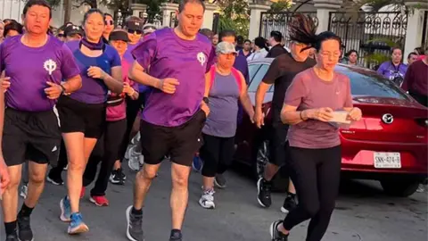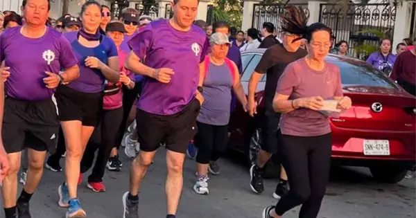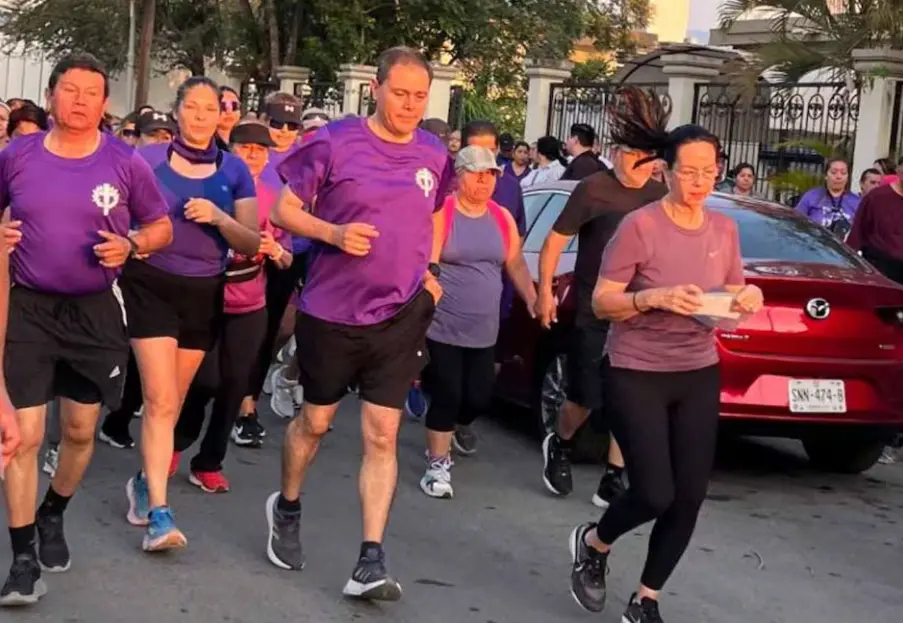 A paso veloz se observó al contingente dirigirse a la parroquia de Cristo Rey. En su mayoría portaban camisetas en color morado, algunas personas iban en bicicleta y otras llevaron a sus mascotas.