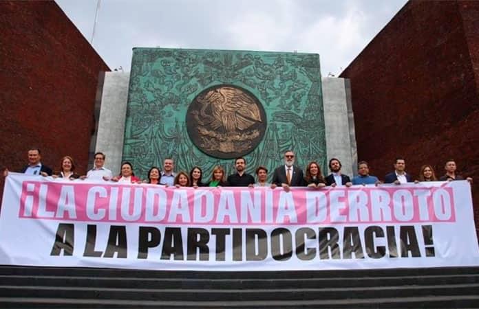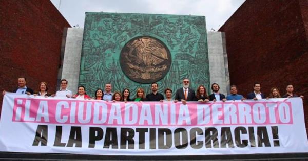 CIUDAD DE MÉXICO, abril 13 (EL UNIVERSAL). – Luego de que seis grupos parlamentarios reconocieron que no hay consenso para aprobar la reforma por la que se prevé acotar facultades al Tribunal Electoral del Poder Judicial de la Federación (TEPJF), la bancada de Movimiento Ciudadano celebró con una lona con la leyenda "la ciudadanía derrotó a la partidocracia".