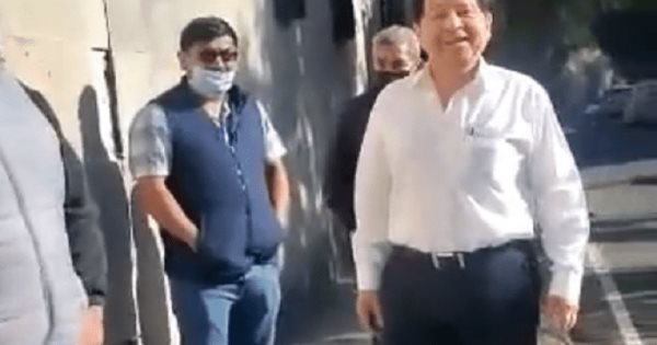 En la grabación se muestra a cuatro sujetos, tres de los cuáles usan cubrebocas y flanquean a un cuarto sujeto -Ángel Gómez Garza-, que viste camisa blanca pantalones oscuros y es quien agrede verbalmente a Óskar Kábata y lo confronta.