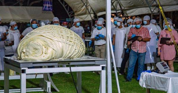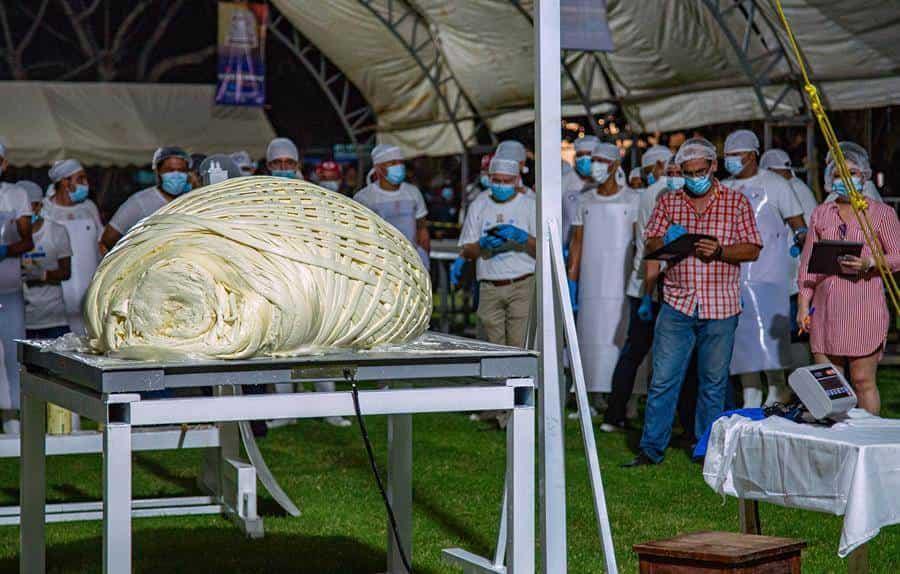 En su cuarto intento de elaboración, más de 80 trabajadores y 10 empresas de lácteos lograron la meta de enrollar 558 kilos de queso tipo hebra, estableciendo un nuevo récord mundial en su categoría y logrando la hazaña en tres horas.