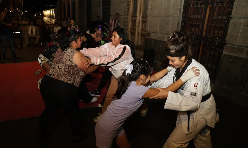 Ella y otras profesionales del deporte de contacto participaron en una clase de defensa personal para mujeres organizada por la Autoridad del Centro Histórico en el marco del Día Internacional de la Mujer.