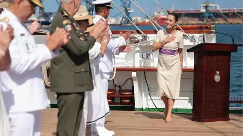 Claudia Sheinbaum aborda el Buque Cuauhtémoc en ceremonia por Bicentenario