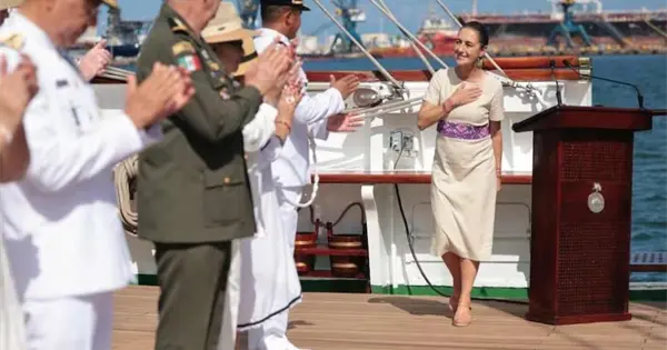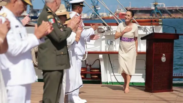 En el marco de los festejos por el Bicentenario de la consolidación de la Independencia en el mar, la Mandataria encabezó este domingo una ceremonia en el velero insignia de la Secretaría de Marina (Semar), en la que el capitán Víctor Molina Pérez, comandante del navío, le rindió el parte de novedades del crucero de instrucción 2025.