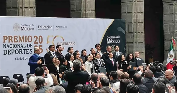 CIUDAD DE MÉXICO, noviembre 28 (EL UNIVERSAL).- En un recinto lleno de historia como lo es el Palacio Nacional, la presidenta de México, Claudia Sheinbaum, encabezó la ceremonia de entrega del Premio Nacional del Deporte 2025, un galardón que este año adquiere un brillo especial al conmemorar su 50.º aniversario.