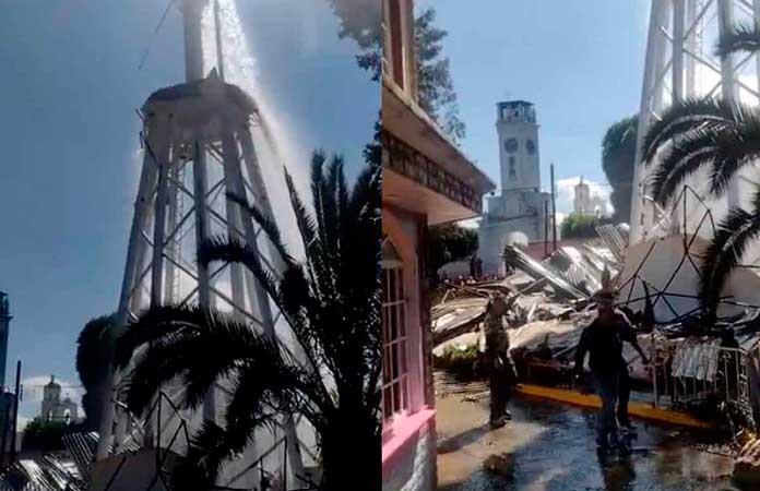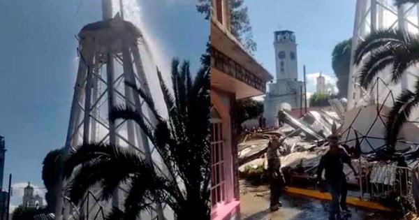 Puebla, Pue.- Un tanque de agua elevado colapsó este miércoles en San Martín, Texmelucan, en Puebla.