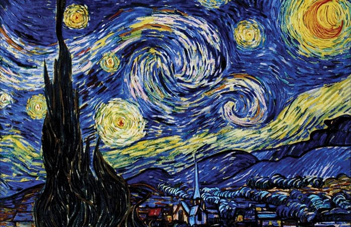 ? Noche Estrellada de V. Van Gogh, pintura impresionista, de pinceladas rápidas, gruesas pero precisas.
