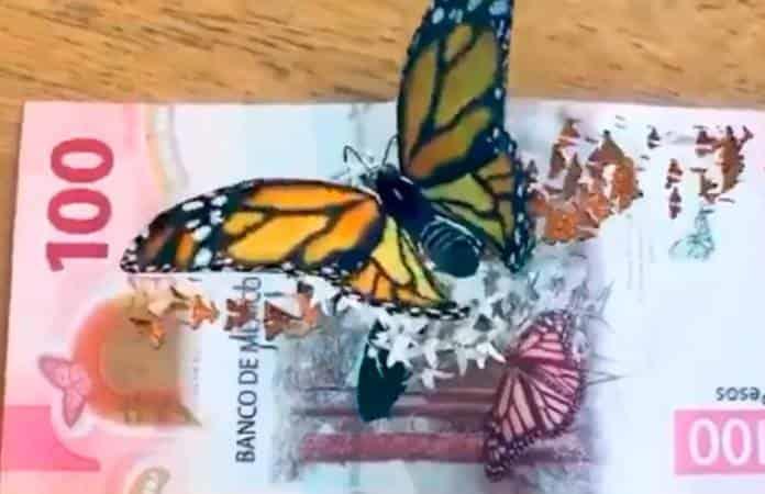 Ver a la mariposa monarca volando y llegando al santuario de la reserva de la biósfera, ya se puede apreciar en el reverso del nuevo billete de polímero de 100 pesos.
