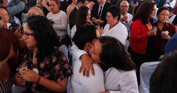 Formada para recibir su acta de matrimonio, María del Carmen comentó que a ella y a su pareja las esperaba una fiesta con toda su familia, pues “es un gran paso para nosotras y para toda la comunidad”.