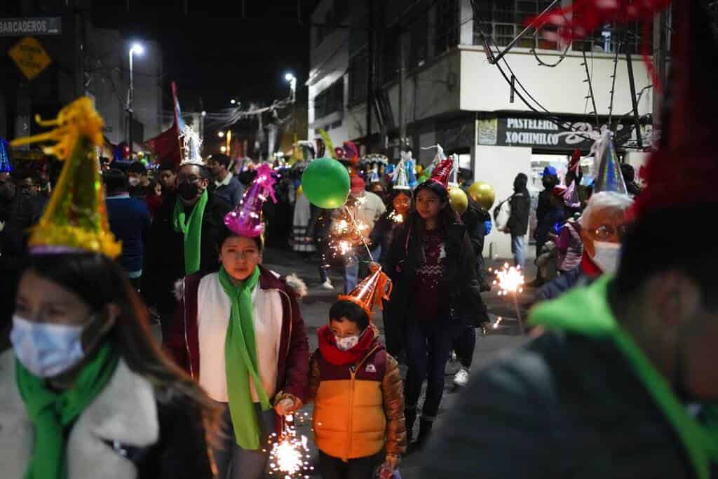 En Xochimilco las posadas involucran todos los sentidos. Al ritmo del tambor, el clarinete y la trompeta, uno se siente tentado a bailar mientras camina, como los integrantes de la comparsa de Miguel. En el trayecto se reparten gorros de colores, globos y reguiletes. Los fuegos artificiales hacen su aparición de manera inesperada y apenas da tiempo de sacar el teléfono para inmortalizar el instante.