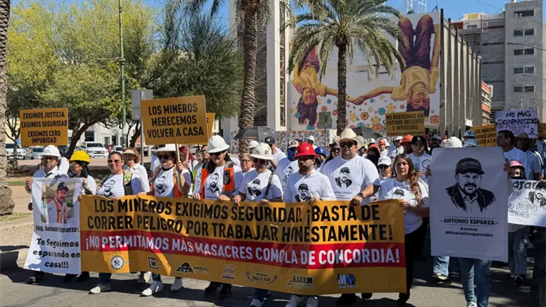 Hermosillo (México), 14 feb (EFE).- Trabajadores del sector minero, estudiantes, familiares y amigos de los mineros desaparecidos y asesinados en el municipio de la Concordia, en el estado de Sinaloa (noroeste), se manifestaron este sábado en la ciudad de Hermosillo, capital del vecino estado de Sonora, para exigirle al Estado mexicano justicia y seguridad en esta actividad económica que representa el 2,5 % del PIB nacional.
