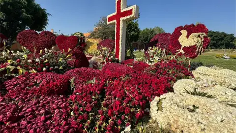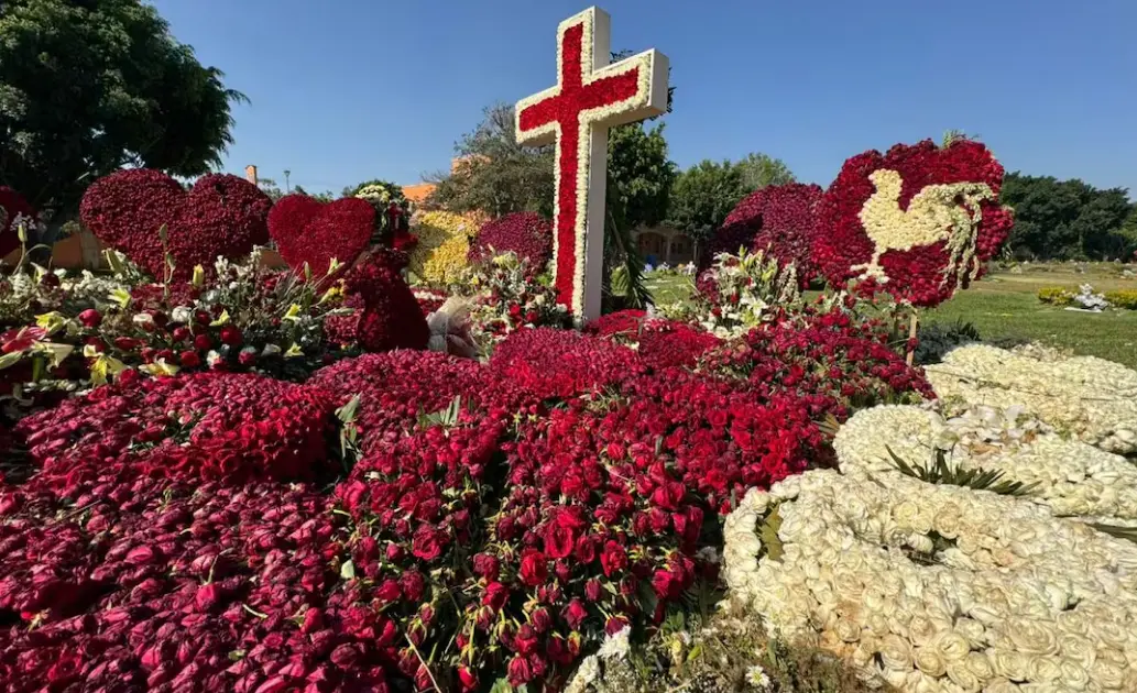 Nemesio Oseguera Cervantes alías El Mencho, la tumba del líder criminal permanece cubierta por más de una decena de coronas de luto y arreglos florales de rosas rojas y blancas.