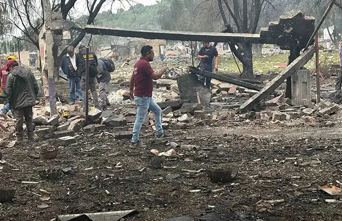 Entre el olor a pólvora, tabicones reventados y restos de artificios pirotécnicos, los peritos inspeccionaron los polvorines que resultaron afectados y en donde los artesanos pirotécnicos fabricaban sus productos.