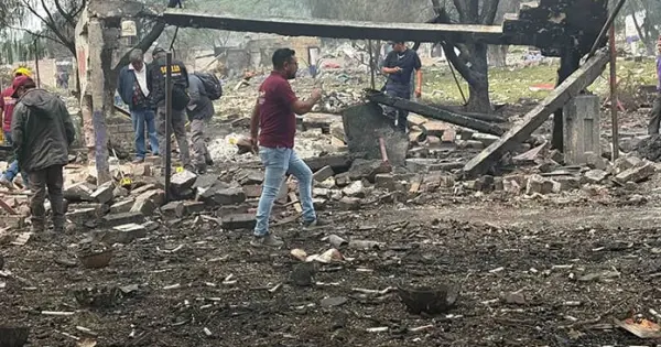 Tultepec, Méx.- La Fiscalía General de Justicia del Estado de México (FGJEM) comenzó los peritajes en los polvorines afectados por la explosión de este miércoles en La Saucera, zona donde la Secretaría de la Defensa Nacional (Defensa) permite la fabricación de pirotecnia, y que ayer sumó dos personas fallecidas. Los agentes ministeriales llegaron al sitio cerca de las 10:00 horas.