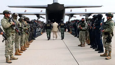 El secretario de Seguridad federal, Omar García Harfuch, dijo en su cuenta de X que los 37 "operadores de organizaciones criminales" fueron enviados militares a cárceles de seis ciudades de Estados Unidos a bordo de siete aeronaves bajo un fuerte resguardo de las fuerzas, según imágenes que difundió el gobierno.