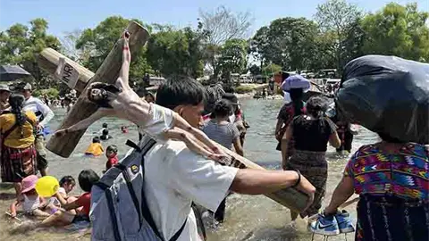 Miles de peregrinos visitan imagen santa en Tecún Umán