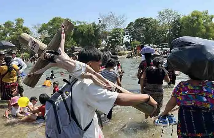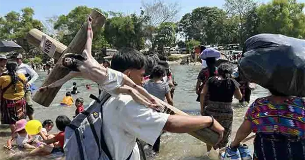 La celebración del Señor de las Tres Caídas coincide con la feria del primer viernes de Cuaresma que se celebra en esta localidad fronteriza, por ello, tras cumplir con su manda, los guatemaltecos aprovechan para cruzar a México de forma irregular por el río Suchiate, que divide a México con Guatemala, para realizar compras.
