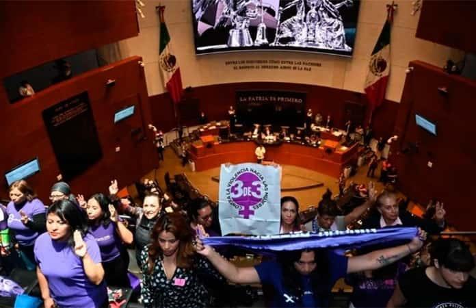 Mientras el diputado Gerardo Fernández Noroña se encontraba en la tribuna del Senado, un grupo de feministas dio la espalda al legislador del Partido del Trabajo, "en un acto de congruencia y dignidad" porque, señalaron, presentó muchos oficios para que la Ley 3 de 3 no pasara.