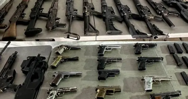 CULIACÁN, Sin.- En una nueva revisión de rutina por cinco módulos del centro penitenciario de Culiacán, elementos de la Policía Estatal, con respaldo de la Guardia Nacional, descubrieron cinco armas de fuego, diez celulares, cien gramos de una yerba seca similar a la marihuana, entre otros objetos.