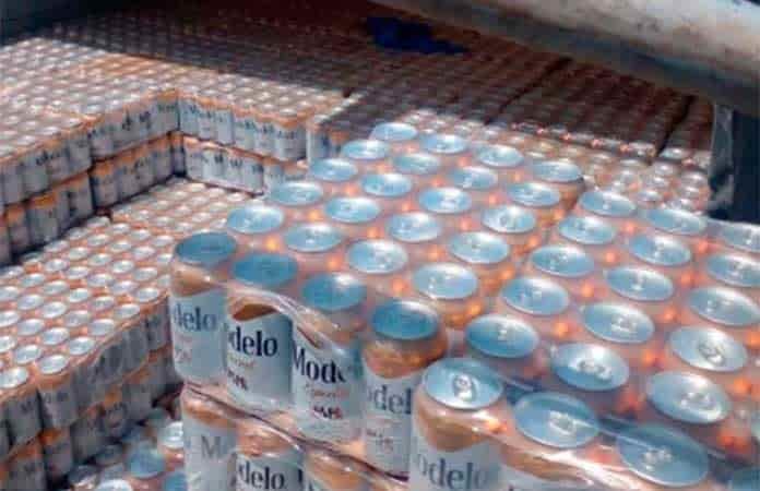 La Fiscalía compartió en su cuenta de Twitter, imágenes del tráiler, los costales de azúcar y las latas de cerveza de la marca Modelo, presuntamente piratas.