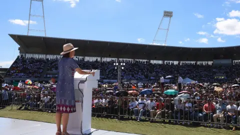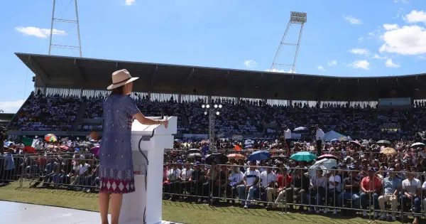 La presidenta Claudia Sheinbaum en su visita a Baja California Sur en la gira de rendición de cuentas, destacó el modelo social de la Cuarta Transformación y criticó el modelo neoliberal de los sexenios anteriores que "dejaron en la pobreza a México".