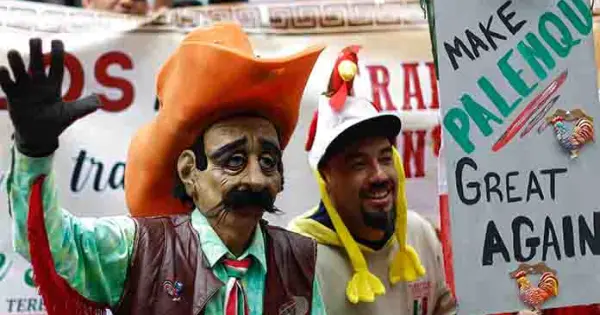 Sosteniendo un pequeño gallo negro iba entre la multitud Eric López Torres, un criador de gallos de 29 años, quien afirmó que “desde antes de nacer” ya estaba vinculado a esa tradición debido a que toda su familia ha criado esas aves por más de cien años en San Luis Potosí.