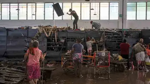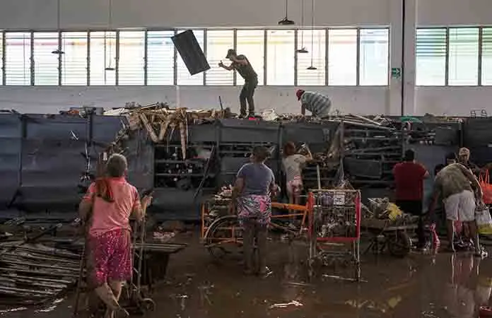 Con varios artículos de primera necesidad que tomaron de los anaqueles de los comercios, decenas de habitantes caminaban llenas de lodo por las calles que aun contenían el agua café que llegó tras los desbordamientos del río Pantepec y el arroyo Estero del Ídolo que dejaron una gran cantidad de casas y comercios afectados severamente.