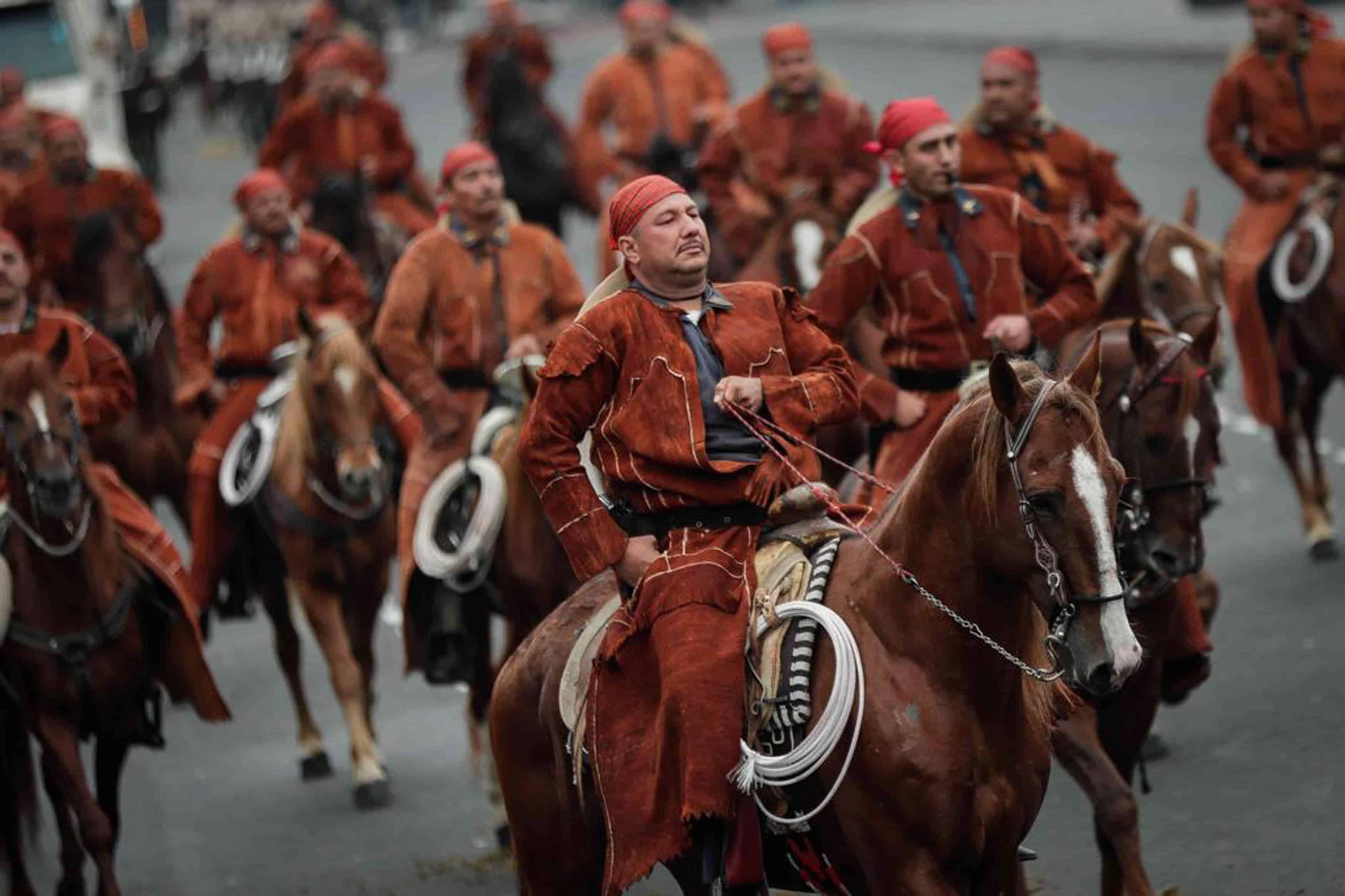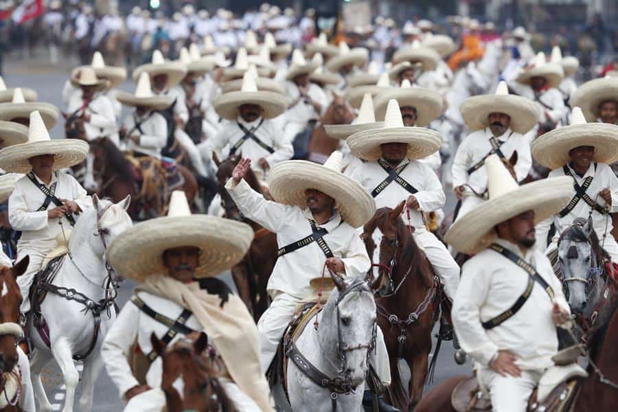 Algunos militares, con vestimentas típicas tradicionales desfilaron por el centro capitalino, donde se les podía observar con sus carrilleras de balas cruzadas alrededor del pecho, sombreros y trajes tradicionales, algunos montados en caballos, mientras la banda de guerra hacía sonar las melodías típicas mexicanas.