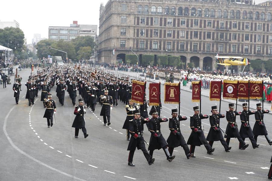 En seguida, sonó el himno nacional mexicano y todos los militares reunidos en el Zócalo de la capital mexicana, así como civiles, se llevaron la mano al pecho y entonaron sus estrofas.
